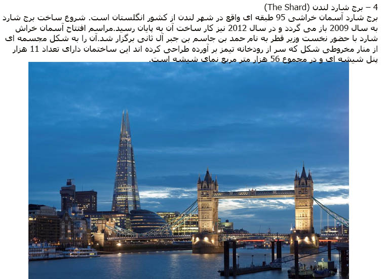 10 Of The Most Famous Buildings In The world The Shard, also referred to as the Shard of Glass, Shard London Bridge and formerly London Bridge Tower, is a 95-storey skyscraper in Southwark, London, that forms part of the London Bridge Quarter development. Previous Next Pages: 1 2 3 4 5 6 7 8 9 10 famous building sakhteman haye namadin 2017-07-11 ash2