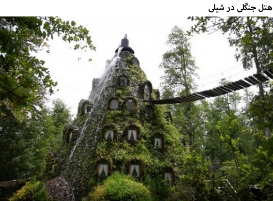 Hotel Montana Magica Lodge is located in Huilo Huilo Reserve in Patagonia, Chile. The hotel is built like a mountain and accessible only via a suspension bridge. Surrounded by a dense forest area in Chile looks like the Montana Magica Lodge, as when they had grown themselves out of the ground. A waterfall makes its way from the top to the foot of the mountain. The construction consists exclusively of sustainable and high-quality materials and is in harmony with nature and the magic of the forest.