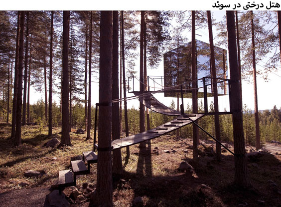 The various rooms in the Tree Hotel are designed respectively by different architects. One room is called “Mirror Cube ‘and is particularly spectacular because its outer sides are completely mirrored and the rooms are completely arranged by the reflections in the landscape. To make this intervention natural as much as possible, a special ultraviolet foil was used to protect birds about to fly.