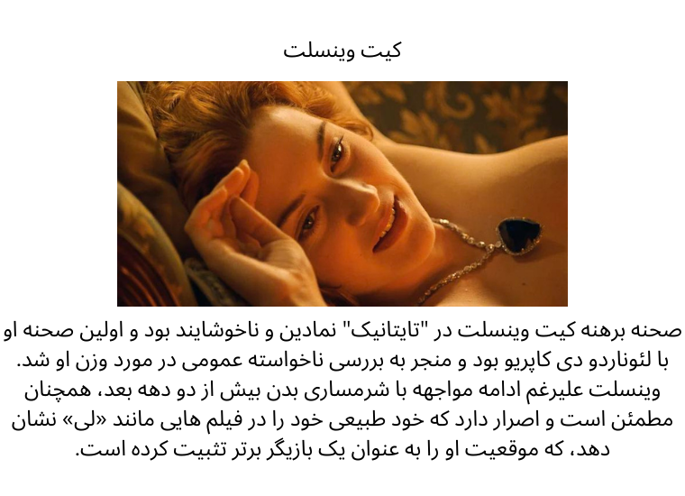 Kate Winslet's nude scene in "Titanic" was iconic and awkward, being her first with Leonardo DiCaprio, and led to unwelcome public scrutiny about her weight. Despite continuing to face body-shaming over two decades later, Winslet remains confident, insisting on showing her natural self in films like "Lee," which has solidified her status as a top actor.