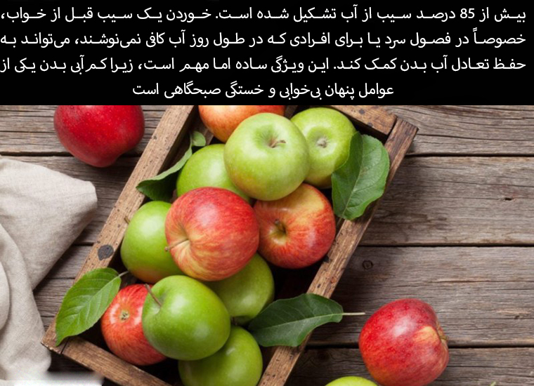 Apples are over 85 percent water. Eating an apple before bed, especially in cold weather or for people who don't drink enough water during the day, can help maintain hydration. This is a simple but important feature, as dehydration is one of the hidden causes of insomnia and morning fatigue.