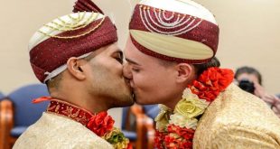 Happy grooms Jahed Choudhury, 24, and Sean Rogan, 19, tied the knot wearing traditional golden Sherwanis in a civil ceremony at Walsall registry office.in 2017