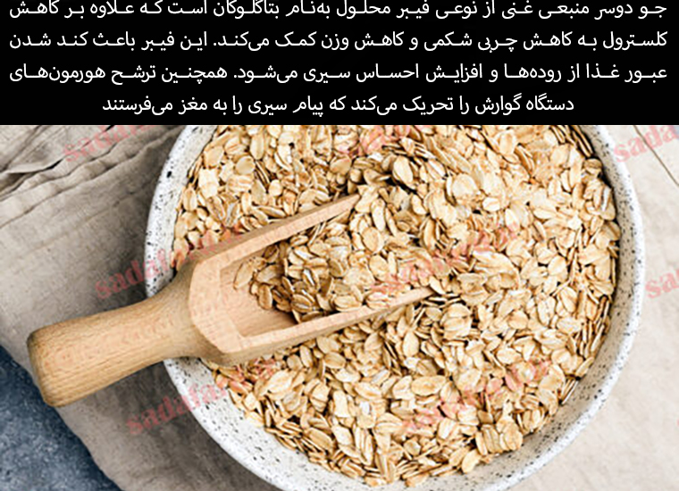 Oats are a rich source of a type of soluble fiber called beta-glucan, which, in addition to lowering cholesterol, helps reduce belly fat and lose weight. This fiber slows down the passage of food through the intestines and increases the feeling of fullness. It also stimulates the secretion of hormones in the digestive tract that send a message of fullness to the brain.