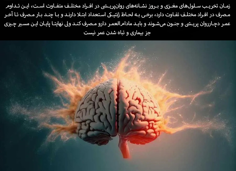 The time it takes for brain cells to be destroyed and symptoms of psychosis to appear varies from person to person. This duration of use varies from person to person. Some people are genetically predisposed to the condition and, with repeated use, develop psychosis and insanity for the rest of their lives. They must take medication for life, but ultimately the end of this path is nothing but illness and a waste of time.