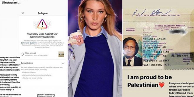 Supermodel Bella Hadid took to the photosharing social media site to celebrate her Palestinian routes but the snap was quickly removed for “violating community guidelines”