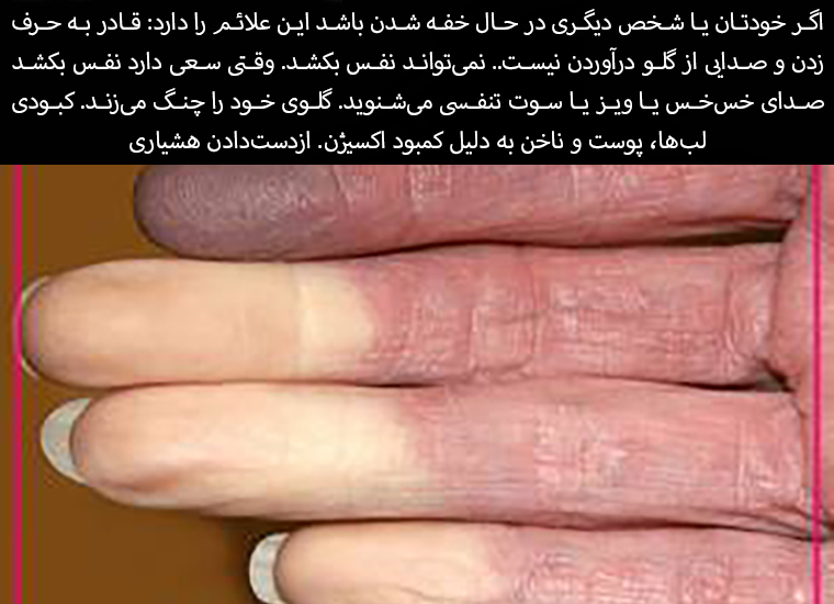 • Bluish discoloration of the lips, skin, or nails due to lack of oxygen