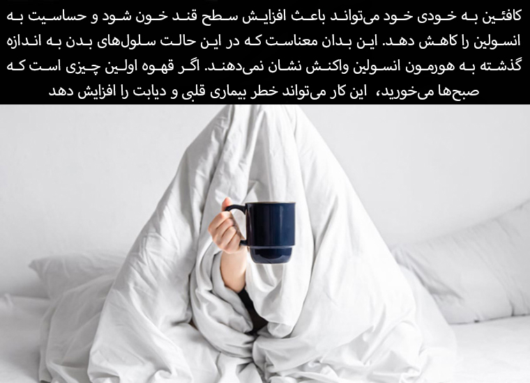 Caffeine itself can raise blood sugar levels and reduce insulin sensitivity. This means that the body's cells don't respond as well to the hormone insulin as they used to. If coffee is your first thing in the morning, it could increase your risk of heart disease and diabetes.