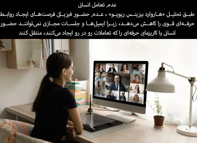 According to an analysis by Harvard Business Review, the lack of physical presence reduces opportunities to build strong professional relationships because emails and virtual meetings cannot convey the human presence or professional charisma that face-to-face interactions create.