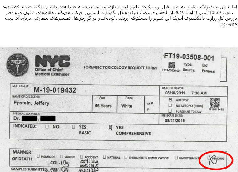 different claim about the cause of Epstein’s death in prison!