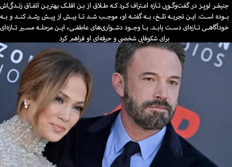 Jennifer Lopez has admitted in a new interview that her divorce from Ben Affleck was the best thing that ever happened to her. The bitter experience, she says, allowed her to grow and gain a new sense of self. Despite the emotional difficulties, it paved the way for her to flourish both personally and professionally.