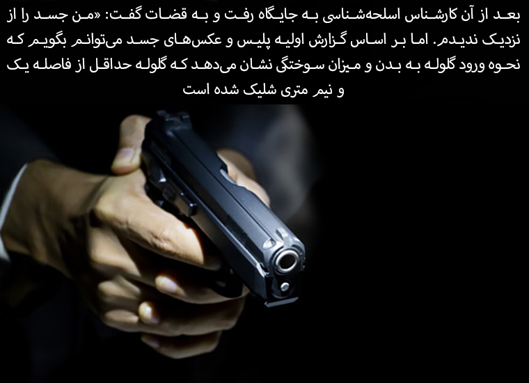 The firearms expert then took the stand and told the judges: "I did not see the body up close. But based on the initial police report and photographs of the body, I can say that the way the bullet entered the body and the extent of the burns indicate that the bullet was fired from at least one and a half meters away."