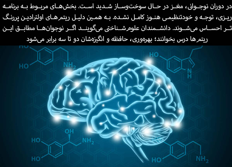 During adolescence, the brain is undergoing intense metabolism. The parts related to planning, attention, and self-regulation are not yet complete. For this reason, ultradian rhythms are felt more strongly. Cognitive scientists say that if teenagers study according to these rhythms, their memory and motivation will double to triple.