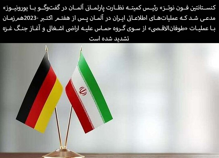 Konstantin von Notz, head of the German parliamentary oversight committee, claimed in an interview with Euronews that Iranian intelligence operations in Germany have intensified after October 7, 2023, coinciding with the "Al-Aqsa Storm" operation by Hamas against the occupied territories and the start of the Gaza war.