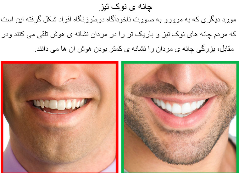 Another thing that has been thought out over and over again in a person's way of thinking is that people consider the sharp and thinned chin in men as signs of intelligence, and on the other hand, the magnitude of the men's chin signifies less intelligence .