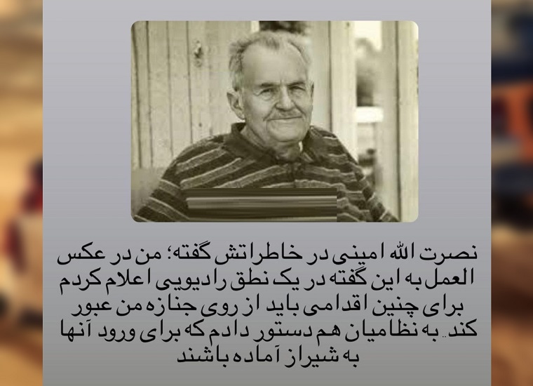 Nusratullah Amini, the governor of Fars at the time, who was appointed by the interim government of Mehdi Bazargan, opposes this action and says in a radio speech: "To destroy Persepolis, you have to walk over my corpse." Following this speech, a number of Marvdasht residents also announced that to destroy Persepolis, you must pass over our corpse.