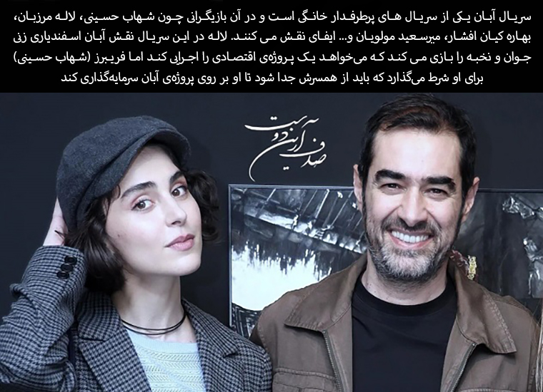The series Aban is one of the most popular domestic series and stars actors such as Shahab Hosseini, Laleh Marzban, Bahareh Kian Afshar, Mirsaeed Mowloyan, and... In this series, Laleh plays the role of Aban Esfandiari, a young and elite woman who wants to implement an economic project, but Fariborz (Shahab Hosseini) sets a condition for her that she must divorce her husband in order for him to invest in Aban's project.