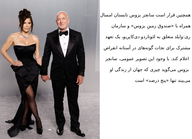 This summer, Sanchez Bezos, with the Earth Fund, and Leonardo DiCaprio's Re:wild organization will also announce a joint commitment to save species near extinction.