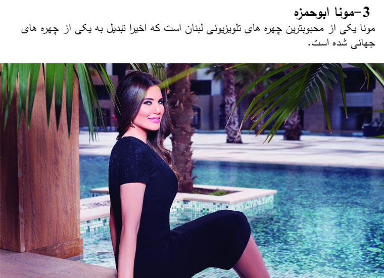 Mona Abou Hamze is a Lebanese TV personality and presenter, born in Barouk into a Lebanese Druze family. She is best known for her role in hosting the Lebanese show Talk of the Town on MTV, a position she has held since April 2009.