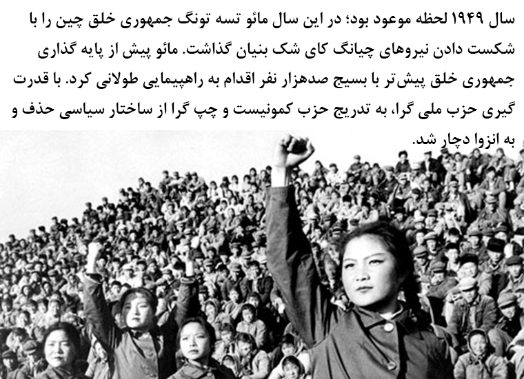 The People's Republic of China was established on October 1, 1949. It was the culmination of over two decades of civil and international wars. Mao's famous phrase "The Chinese people have stood up" associated with the establishment of the People's Republic of China was not used in the speech he delivered from the Gate of Heavenly Peace (Tian'anmen) on October 1.