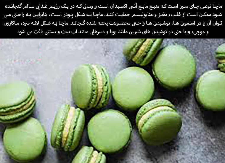Matcha is a type of green tea that is a liquid source of antioxidants and may support the heart, brain, and metabolism when included in a healthy diet. Matcha comes in powder form, so it can be easily incorporated into smoothies, drinks, and even baked goods. Matcha can be found in iced lattes, macarons, and mochi, or even in sweetened beverages like boba and desserts like candy and ice cream.