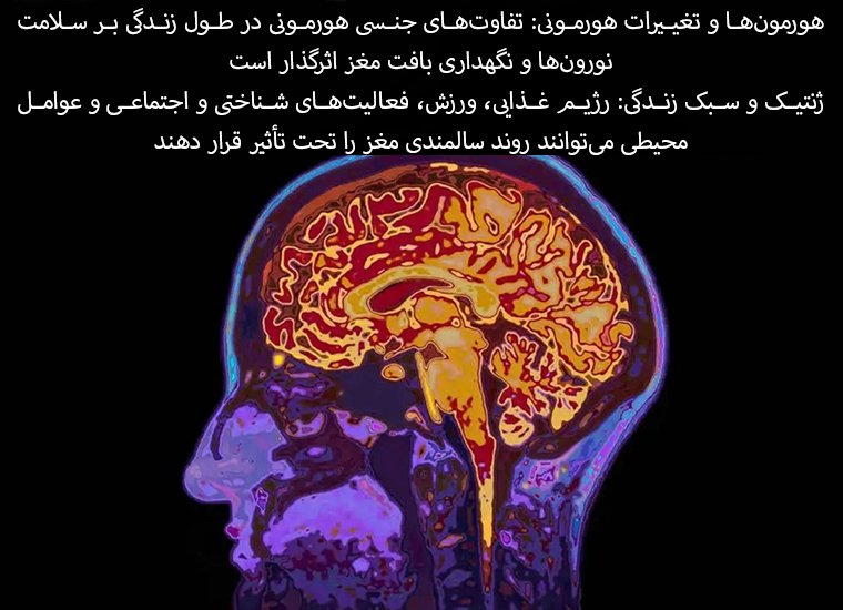 Hormones and hormonal changes: Hormonal sex differences throughout life affect the health of neurons and the maintenance of brain tissue. Genetics and lifestyle: Diet, exercise, cognitive and social activities, and environmental factors can affect the aging process of the brain.