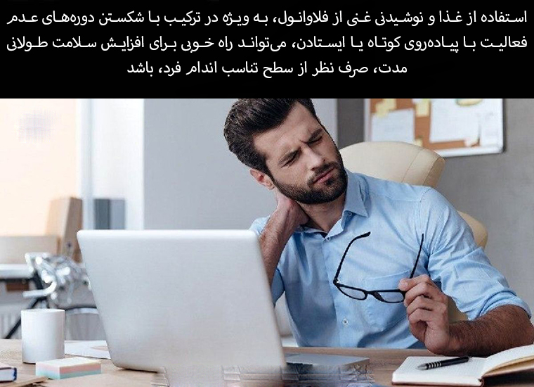 Consuming flavanol-rich foods and drinks, especially in combination with breaking up periods of inactivity with short walks or standing, can be a good way to boost long-term health, regardless of a person's fitness level.