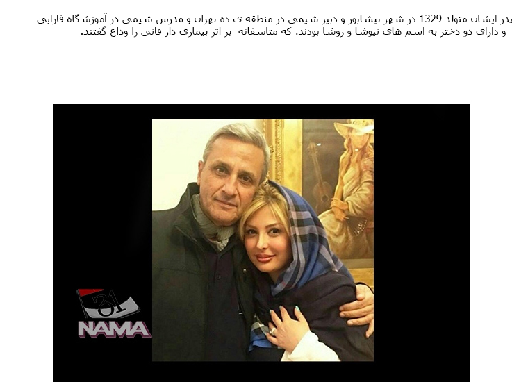 Niusha zeighami father’s funeral Naser zeighami was born on 1951.he was a chemistry teacher in Farabi Institute.he had two daughters named,Niousha and Rosha. Previous Next Pages: 1 2 3 4 5 6 7 8 9 10 khatme pedare zeghami niosha zeighami 2017-03-05 ash2