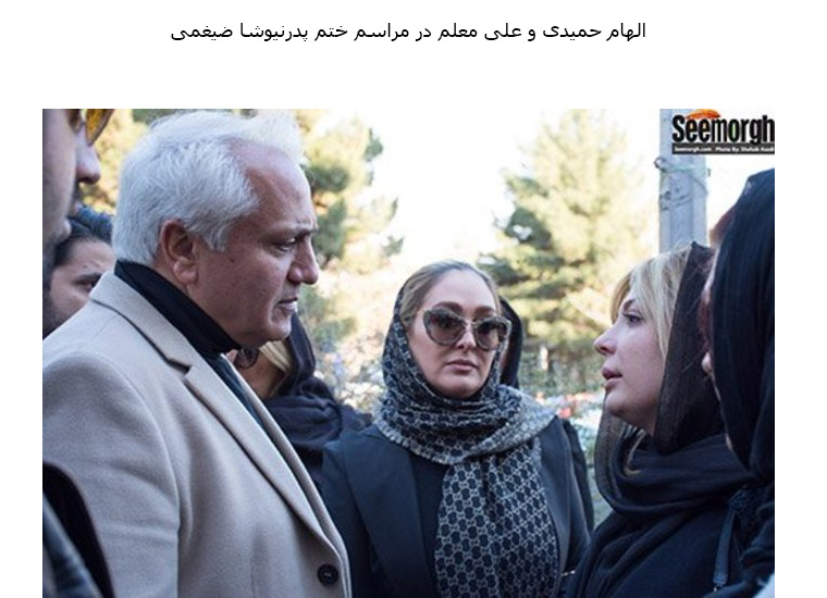 Niusha zeighami father’s funeral Elham hamid,Ali moallem in niousha 's father funeral. Previous Next Pages: 1 2 3 4 5 6 7 8 9 10 khatme pedare zeghami niosha zeighami 2017-03-05 ash2