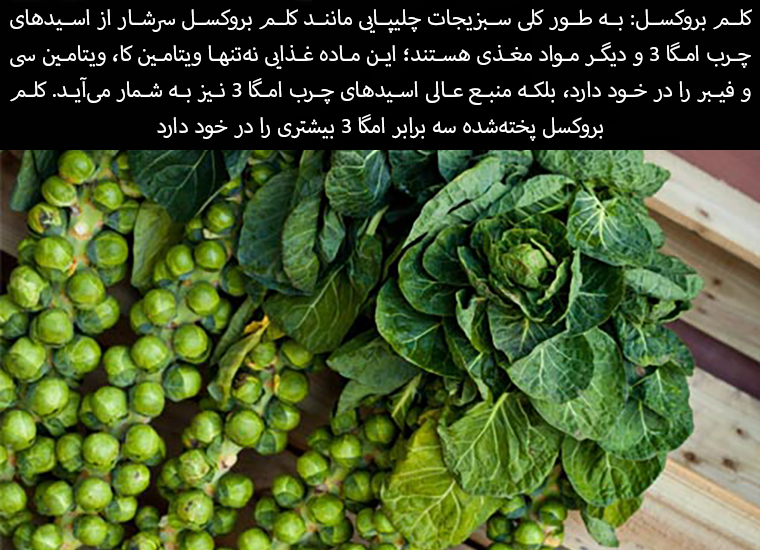 Brussels sprouts: Cruciferous vegetables like Brussels sprouts are generally high in omega-3 fatty acids and other nutrients; not only is this food packed with vitamin K, vitamin C, and fiber, it's also an excellent source of omega-3 fatty acids. Cooked Brussels sprouts have three times more omega-3s.