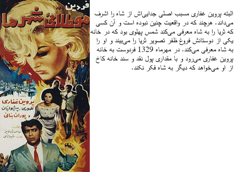 But somewhere in her memoirs, she mentions a friendship with men such as Dr. Abdul Karim Eyadi and Gholamreza Pahlavi.