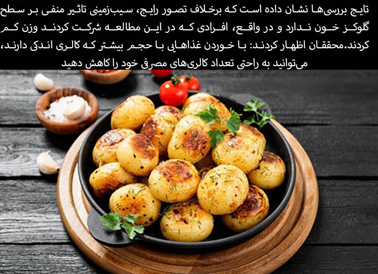Studies have shown that, contrary to popular belief, potatoes do not have a negative effect on blood glucose levels and, in fact, people who participated in the study lost weight. The researchers stated: "By eating larger, lower-calorie foods, you can easily reduce the number of calories you consume."