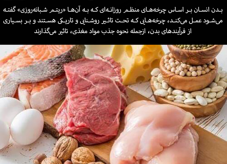 The human body operates on regular daily cycles called "circadian rhythms," which are influenced by light and darkness and affect many body processes, including how we absorb nutrients.