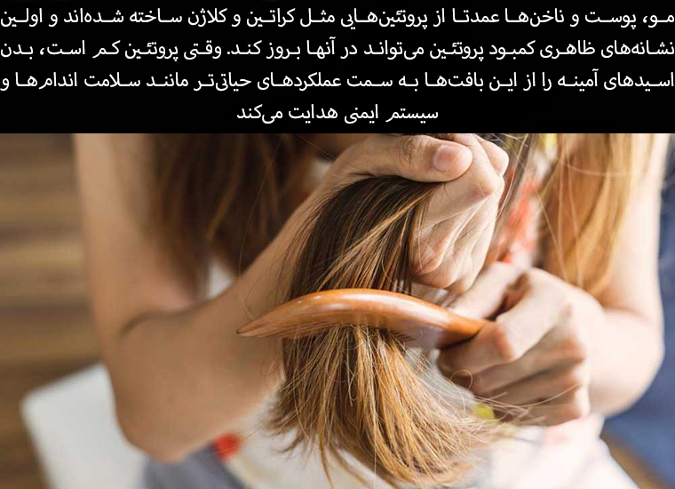 Hair, skin, and nails are made primarily of proteins like keratin and collagen, and the first visible signs of protein deficiency can appear in them. When protein is low, the body diverts amino acids from these tissues to more vital functions, such as organ health and the immune system.