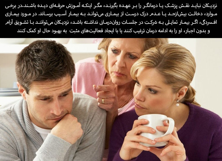 Relatives should not take on the role of doctor or therapist unless they have received professional training. In some cases, excessive involvement or lack of understanding of the illness can harm the patient. In the case of depression, if the patient is unwilling to participate in psychotherapy sessions, relatives can encourage him to continue treatment with calm encouragement without coercion or help him improve by creating positive activities.