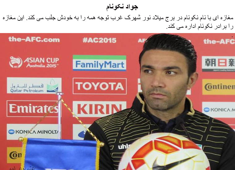 Second job of Famous Iranian footballers Javad Nekounam is an Iranian retired footballer who played as a central midfielder, and the current coach of F.C. Khooneh be Khooneh Previous Next Pages: 1 2 3 4 5 6 7 8 9 10 footbalist ha iranian footballers shoghle dovvom 2017-09-12 ash2