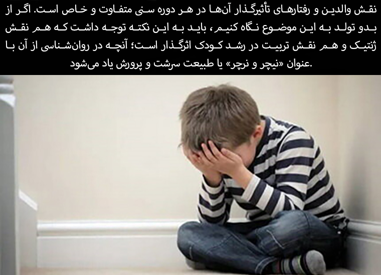 The role of parents and their influential behaviors are different and specific at each age. If we look at this issue from birth, we should note that both genetics and upbringing play an important role in a child's development; what is referred to in psychology as "nature and nurture."