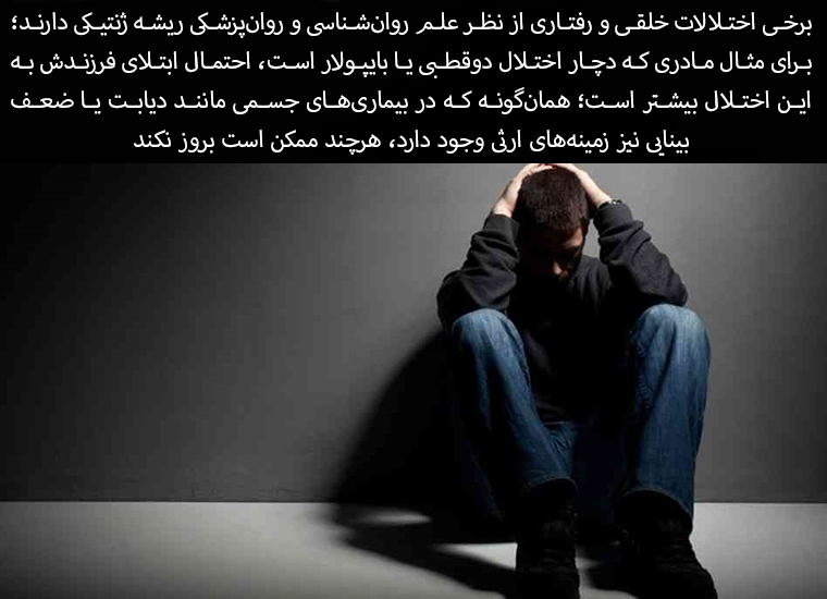 Some mood and behavioral disorders have a genetic origin in terms of psychology and psychiatry; for example, a mother who has bipolar disorder is more likely to have a child with this disorder; just as there are hereditary factors in physical diseases such as diabetes or poor eyesight, although they may not manifest.