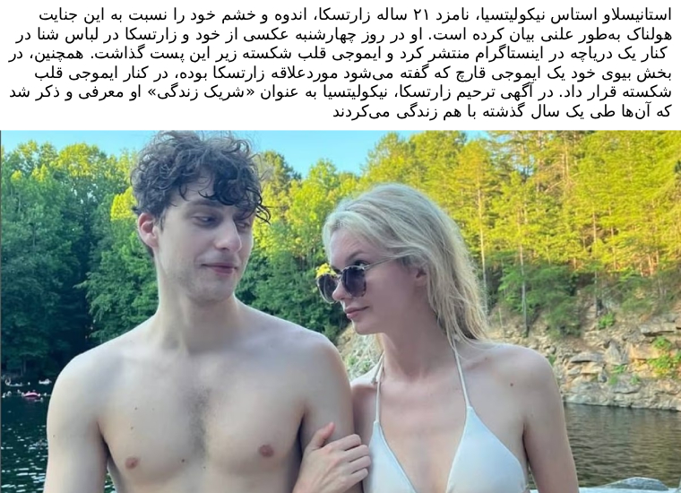 Zarutska's 21-year-old fiancé, Stanislav Stas Nikolitsia, has publicly expressed his grief and anger over the horrific crime. On Wednesday, he posted a photo of himself and Zarutska in swimsuits by a lake on Instagram, accompanied by a broken heart emoji. He also included a mushroom emoji, which Zarutska is said to have liked, in his bio, alongside the broken heart emoji. Zarutska's obituary referred to Nikolitsia as her "life partner" and noted that they had been living together for the past year.