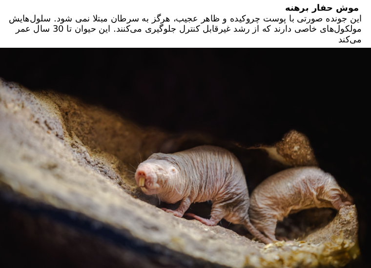 Their cells contain unique molecules that prevent uncontrolled growth. Living up to 30 years, they outlive similar sized rodents by decades while staying remarkably healthy throughout their long lives.