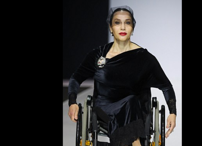 Elegant disabled models took to the catwalk in their wheelchairs in a stunning show for Moscow Fashion Week today.Draped in chic cocktail dresses and trendy leather trousers, the women dazzled on the runway the Gostiny Dvor Shopping and Exhibition Centre.