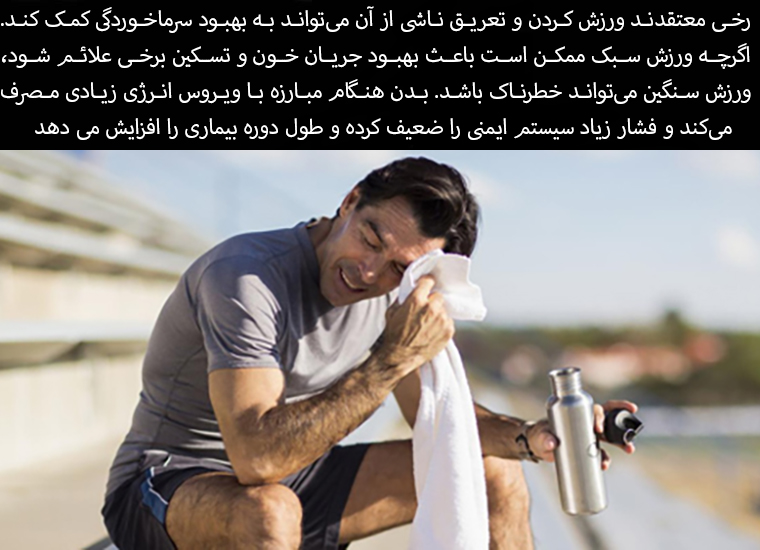 Some believe that exercising and the resulting sweating can help to heal a cold. While light exercise may improve blood flow and relieve some symptoms, strenuous exercise can be dangerous. The body uses up a lot of energy when fighting the virus, and excessive stress weakens the immune system and prolongs the illness.