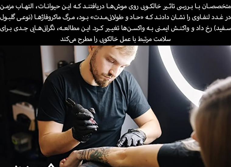 Researchers studying the effects of tattoos on mice found that the animals showed chronic inflammation in the lymph nodes that was "acute and long-lasting," the death of macrophages (a type of white blood cell) occurred, and the immune response to vaccines was altered. The study raises serious health concerns related to tattooing.