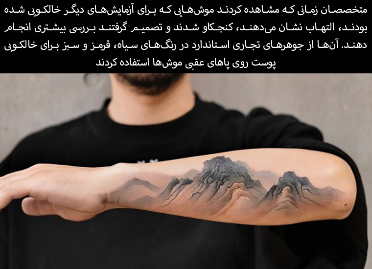 The experts became curious when they noticed that mice that had been tattooed for other experiments were showing inflammation and decided to investigate further. They used standard commercial inks in black, red and green to tattoo the skin on the mice's hind legs.