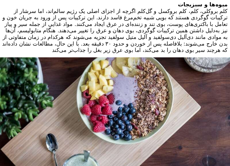 Foods from the allium family, such as garlic and onions, can also affect the smell of our sweat and breath for the same reason as cruciferous vegetables: when they're metabolised by the human body, they break down into stinky compounds like diallyl disulphide and allyl methyl sulphide, which are emitted by your body in slightly different timelines – right after ingestion and then, in the case of allyl methyl sulphide, with a peak 30 minutes later.