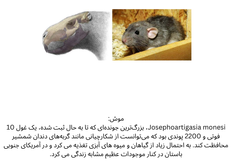The Josephoartigasia monesi, the largest rodent ever recorded, was a ten-foot-long, 2,200-pound giant capable of fending off predators like saber-toothed cats. Likely feeding on aquatic plants and fruits, it lived in ancient South America alongside similar massive creatures. Suddenly, modern rats don’t seem so bad!