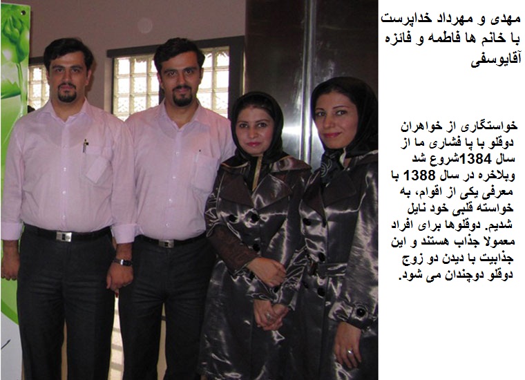 Twin sisters who married twin brothers. Marriage of Mehdi and Mehrdad Khodaparast brothers with women Fatemeh and Faezeh Agha Yousefi from Isfahan in 2009. Previous Next Pages: 1 2 3 4 5 6 7 8 9 10 Marriage of twins married similarities twin brothers twin sisters 2020-09-24 admin