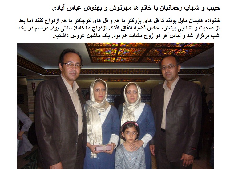 Twin sisters who married twin brothers. Marriage of Habib and Shahab Rahmanian brothers with Mehrnoosh and Behnoosh Abbasabadi in 1390 Previous Next Pages: 1 2 3 4 5 6 7 8 9 10 Marriage of twins married similarities twin brothers twin sisters 2020-09-24 admin