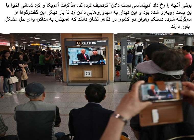 For a brief moment, Mr Trump and Mr Kim were joined by South Korea's President Moon Jae-in, an unprecedented three-way gathering.Speaking next to Mr Trump in a rare statement to the press, Mr Kim said the meeting was a symbol of their "excellent" relationship.