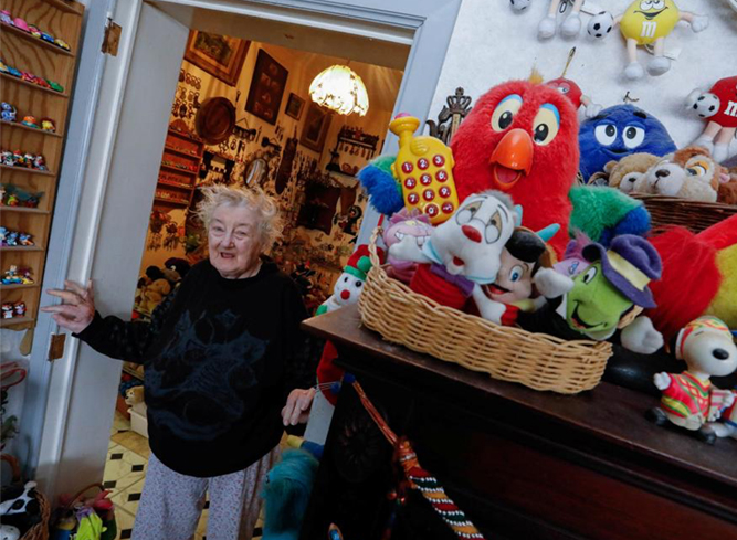 Catherine Bloemen, 86 years old, is surrounded by her collection of Kinder Surprise toys and Teddy Bear in Brussels, Belgium, 15 March 2017. Catherine Bloemen has been collecting Kinder Surprise toys and teddy bears since the age of 21. Its collection now has more than 6000 elements. The Kinder Surprise are very popular for sale during the Easter period in Belgium.